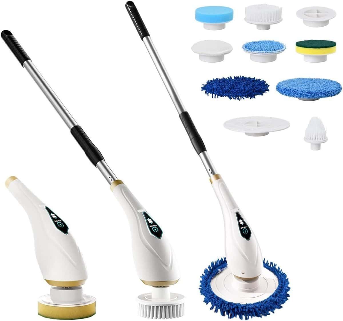 Thelau – Elektrische centrifuge met draadloze reinigingsborstel en 8 verwisselbare koppen – Verlengbare handgreep voor badkuip, keuken, vloer, badkamer, tegels, muren – 2 snelheden