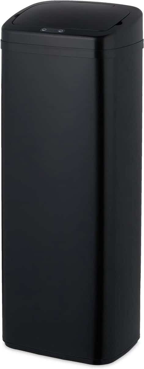 Deze automatische afvalbak is een musthave voor in de keuken. Dankzij de sensor opent en sluit de prullenbak zonder dat je hem aan hoeft te raken, wat extra hygiënisch is. Met een capaciteit van 50 liter is deze vuilnisbak ideaal voor het scheiden van restafval, papier en plastic. De afvalemmer heeft een afmeting van ca. 84 x 33 x 25 cm en is voorzien van een vuilniszakhouder, zodat de zakken goed blijven zitten. Het zwarte design van staal en kunststof past perfect bij moderne keukens.