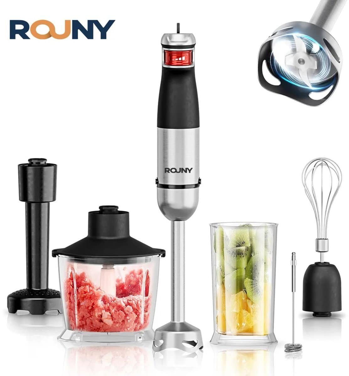 Staafmixer 6-in-1 – 1500W – RVS Messen – Hakmolen, Garde & Pureeraccessoires Krachtig, multifunctioneel en ontworpen voor elke keuken De 6-in-1 elektrische staafmixer is jouw ultieme keukenhulp voor moeiteloos mixen, hakken, pureren en kloppen. Met een indrukwekkend vermogen van 1500 watt en duurzame roestvrijstalen messen behaal je altijd een glad, professioneel resultaat – van soepen tot smoothies, sauzen en babyvoeding.