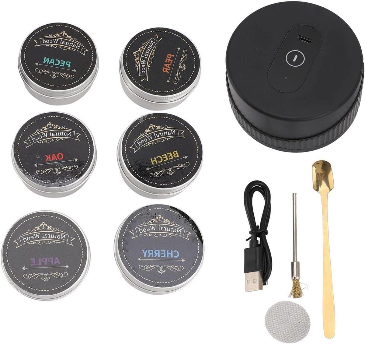 Whisky Roker Set – Elektrische Roker Kit voor Keuken Cocktails – Met 6 Houtchips.