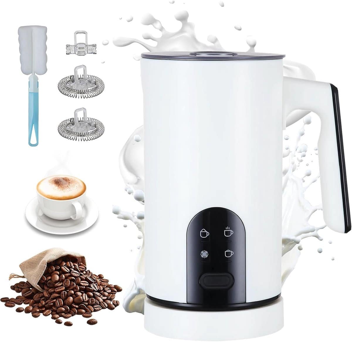 Witte 5-in-1 elektrische melkschuimer – Automatisch schuimen van warme en koude melk – Verwarmt en schuimt voor latte, cappuccino en warme chocolademelk – Stil, veilig & gemakkelijk schoon te maken – Geschikt voor elke keuken
