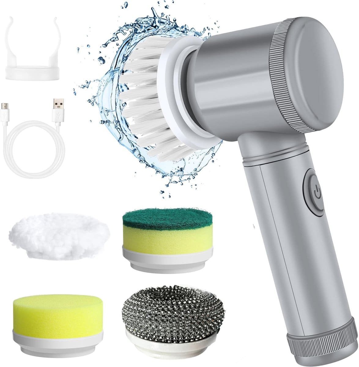 Elektrische Roterende Schoonborstel – 5 Stuks – 360° Draaikop – USB Oplaadbaar – Draadloos – Voor Keuken, Badkamer en Ramen Deze 5-delige elektrische roterende schoonborstel is vervaardigd uit duurzaam kunststof en voorzien van een 360° draaiende borstelkop. USB-oplaadbaar en draadloos ontwerp – de ideale oplossing voor grondige reiniging van keukens, badkamers, ramen, vloeren, pannen en gootstenen. Een veelzijdige reinigingsassistent voor elk huishouden.