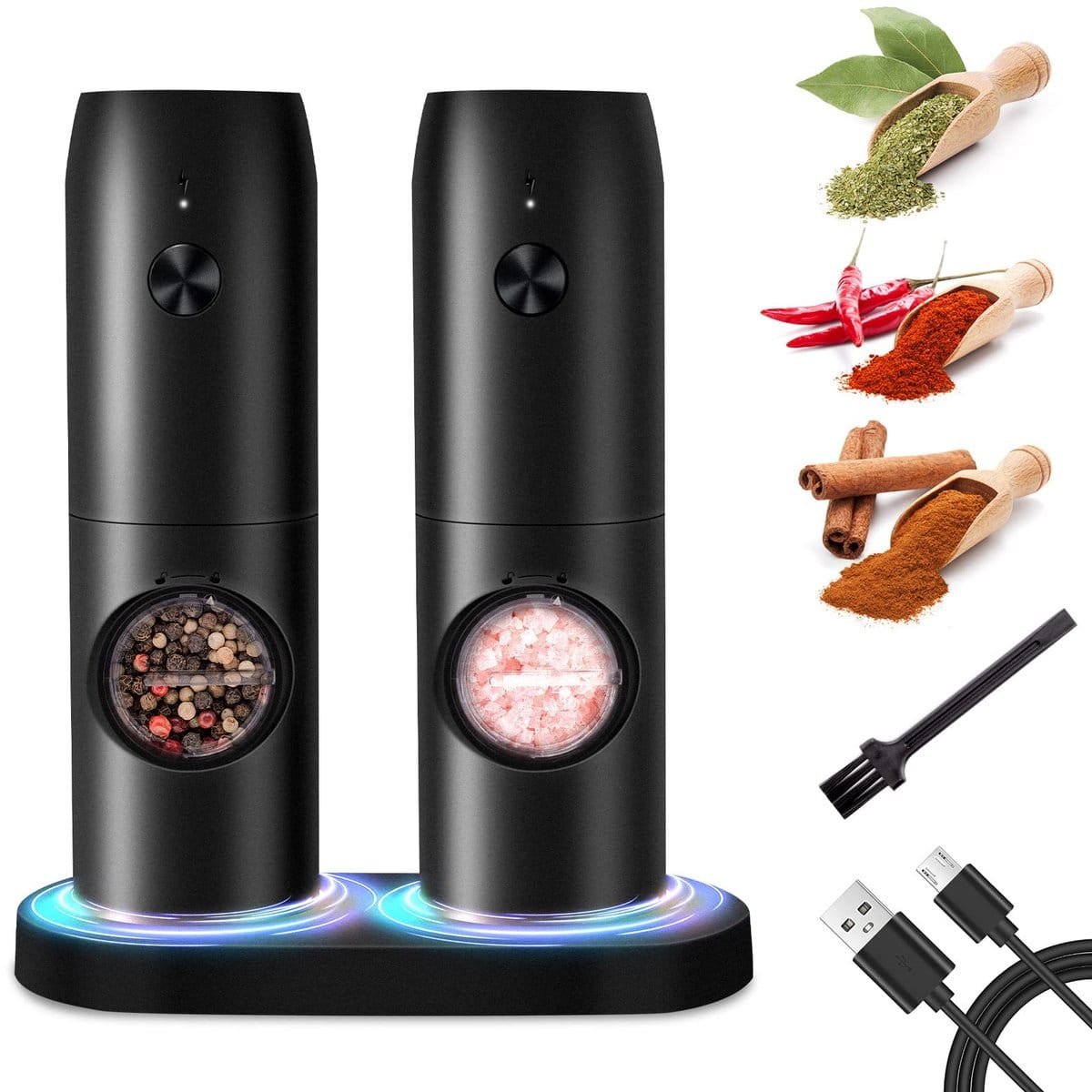 Ynkkvre – elektrische zout- en pepermolens set van 2 met oplaadstation – verstelbare maalgraad – automatische bediening met LED-licht en reinigingsborstel voor keuken, BBQ en restaurant