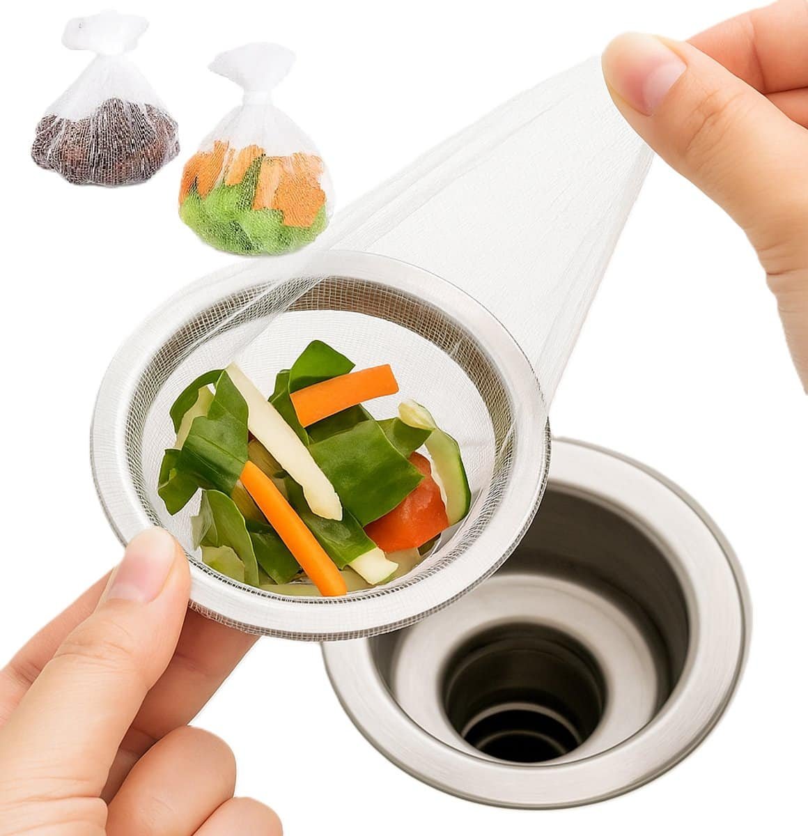 100x Wegwerp Gootsteen Filterzakjes – Fijnmazig Net voor Voedselafval | Anti-Verstopping | Rekbaar tot 18 cm | Polyester | Hygiënisch & Makkelijk in Gebruik – Keuken Accessoire