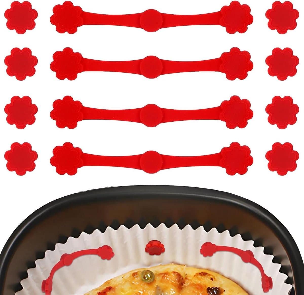 12 Stuks Airfryermagneten voor Bakpapier, Hittebestendige Airfryermagneet Siliconen Gesp Het Vergrendelen Van de Voeringen en Het Veilig Bevestigen Van de Mand – Airfryer Accessoires – Keuken Gadgets – Geschikt voor Alle Modellen – Rood