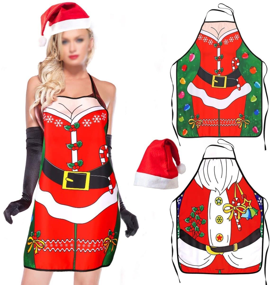 2 stuks grappige kerstschorten uniseks set voor vrouwen mannen, kerstversiering sexy paar skorten met 1 kerstmuts voor horeca keuken bakken BBQ Kerstmis kostuum accessoires