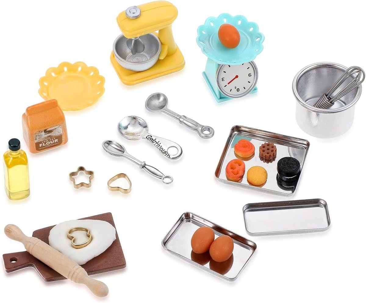 24 pieces gnome accessoires - 1/12 miniature keuken accessoires - kerst poppenhuis accessoires - keukenmeubels - bakken - kerst gnome accessoires - mini deegroller - olie fles - eieren - meel zak