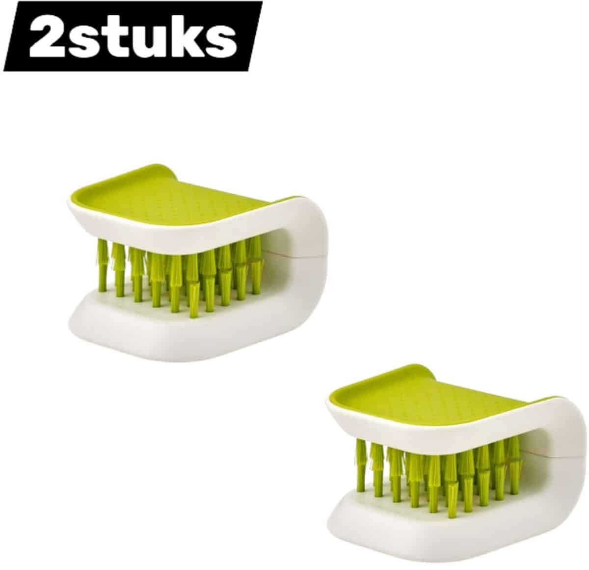 2stuks – Schoonmaakborstel – U-vormige Mesreiniger – Veilige Schoonmaakborstel voor Messen – Vorken en Lepels – keukenborstel – Dubbele Zijde met Zachte en Harde Borstelharen – keuken accessoires – groen