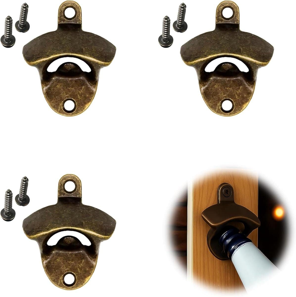 3 Pcs Bottle Opener Wall – Beer Opener Metal – Gemonteerde Schroeven voor Senior Bar Accessoires – Bar Restaurant Cafe Keuken