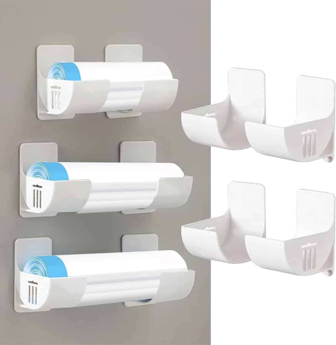 4 Pcs Wandgemonteerde Afvalzak Houder – Wandgemonteerde Afvalzak Dispenser Organizer – Afvalzak Organizer voor Keuken – Opslag en Organisatie – Keuken Accessoires – Opslagsysteem (Wit)