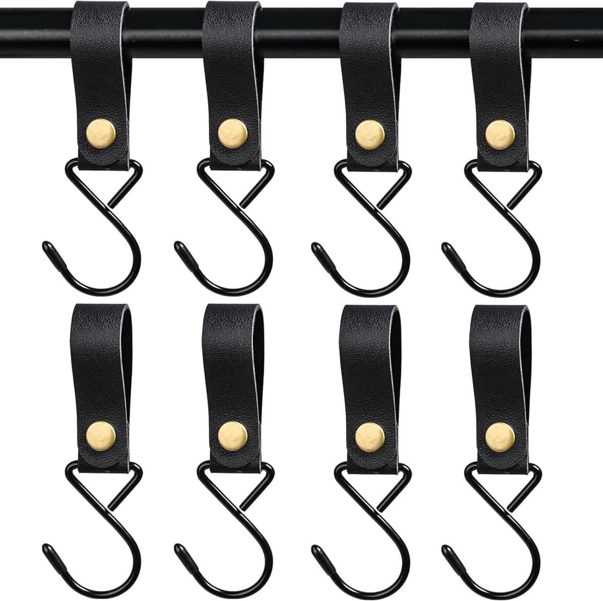 Voordelen van de Metal S Hooks Snelle Toegang: De combinatie van de S-haken met lederen straps zorgt voor een eenvoudige opening en sluiting met een handige drukknop. Dit biedt je snel en gemakkelijk toegang tot de items die je wilt ophangen.