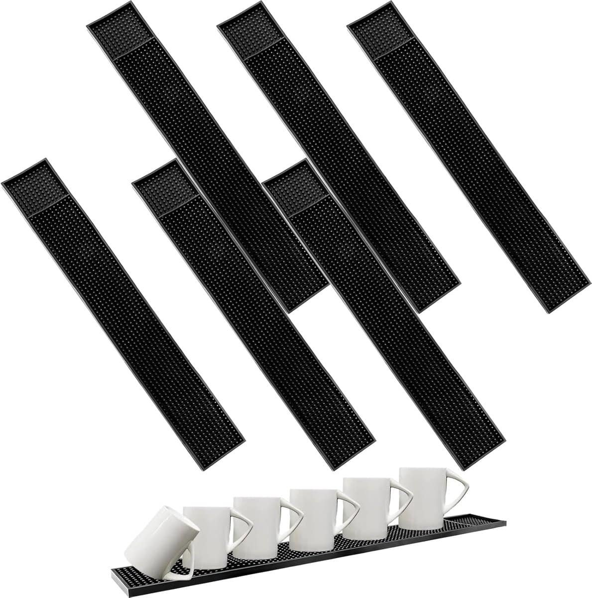 6 stuks 8 x 60 cm barmat rubber – zwart rubberen afdruipmat – droogmat – bar service mat barmat antislip voor bar – club – keuken – restaurant – horeca accessoires