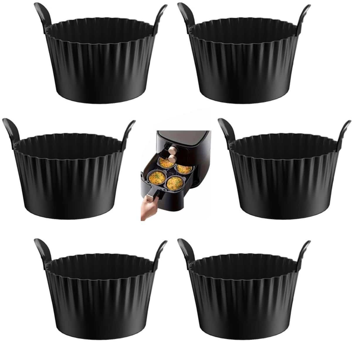 6-stuks Airfryer accessoires - Airfryer eivorm - Herbruikbare siliconen bakvormpjes - Bakvorm accessoires - Antiaanbak keuken bakgereedschap - Met handvatontwerp - 9*9*5.5cm - Geschikt voor bakken, eieren, cakes, snacks - Zwart