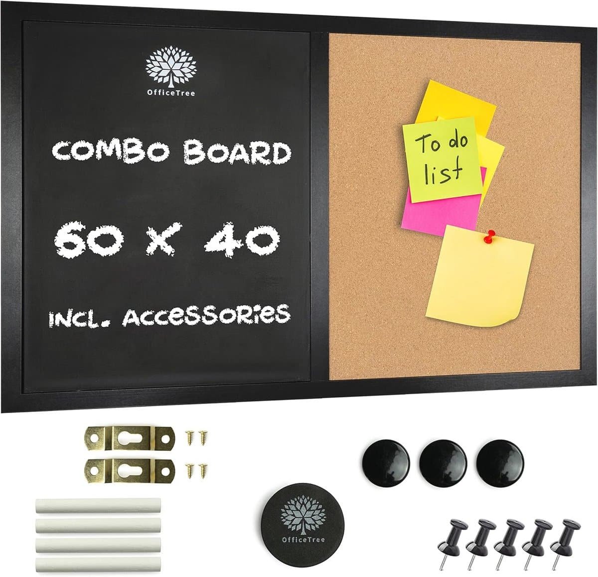Ontdek het ideale 2-in-1 combibord van 60 x 40 cm, perfect voor elke ruimte! Dit multifunctionele bord combineert een magnetisch krijtbord met een kurk prikbord in een elegant zwart frame. Ideaal voor de keuken als planningshulp, in de kinderkamer voor leer- en speelactiviteiten, of op kantoor voor optimale communicatie. Deze complete set bevat montagemateriaal, magneten, krijt, pinnen en een spons, zodat je direct aan de slag kunt. Lichtgewicht en veelzijdig, het bord is geschikt voor huishouden, school en werk. Maak je notities, to-do-lijsten en berichten gemakkelijk zichtbaar en georganiseerd met dit stijlvolle combibord. Een perfect cadeau voor vrienden en familie of een verrassend geschenk voor een kinderverjaardag. Bestel nu en breng creativiteit en organisatie in je dagelijks leven!