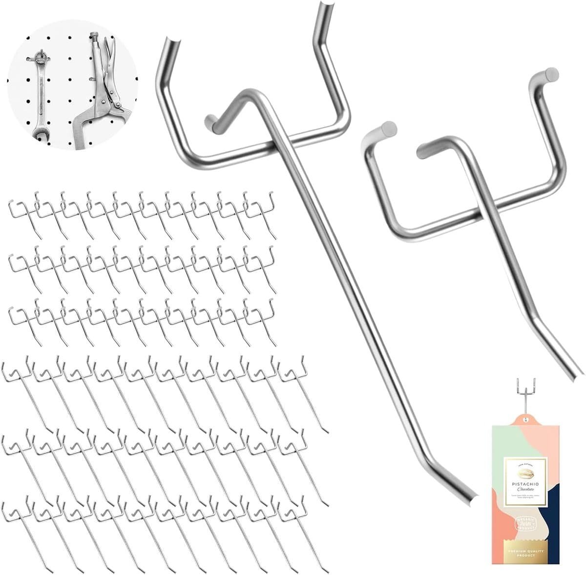 Productbeschrijving: RVS Pegboard Haken Maak je opbergruimte efficiënter en georganiseerder met onze hoogwaardige RVS pegboard haken. Deze haken zijn de perfecte oplossing voor het netjes opbergen van verschillende items in jouw garage, werkplaats, keuken of winkel. Ontdek de voordelen van deze duurzame en stevige haken!