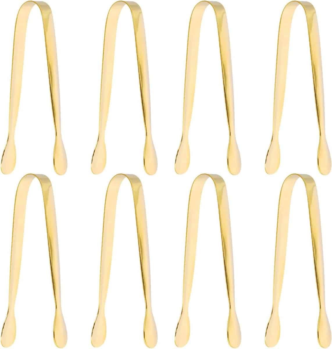 8-delige roestvrijstalen mini suikerklontentang set voor zoete potten en ijsklemmen – Restaurant en keuken serveertang – Goudkleurig, 11 cm – Bruiloft en hotelbenodigdheden – Koffie accessoires