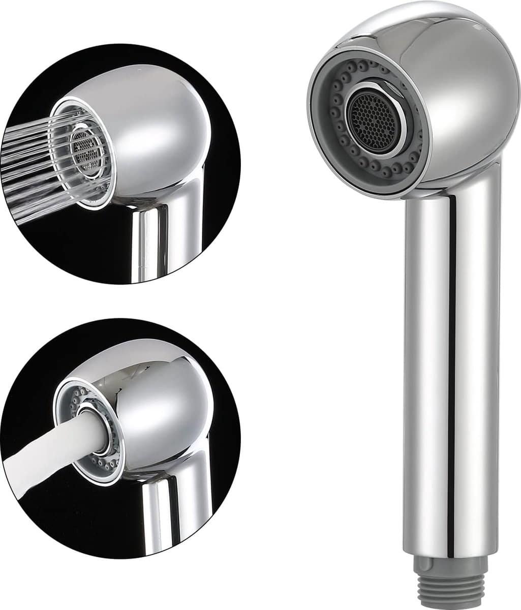 Afdruiprek, vervangkop, keukenkraan, uittrekbaar, keukendouche, spoelbak, keuken, douche, spoelbakarmatuur, kraan, accessoires, 2 functies, gepolijst chroom,