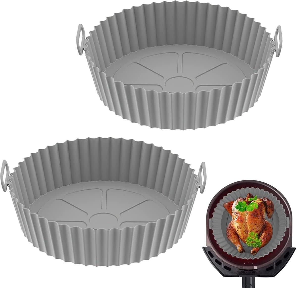 Airfryer Accessoires- airfryer bakpapier-Siliconen bakjes voor de airfryer – Herbruikbare bakjes voor de airfryer – Accessoires voor de airfryer – Vervangende anti-verbrandingsaccessoires voor de keuken (verpakking van 2 – Grijs – 110 g)