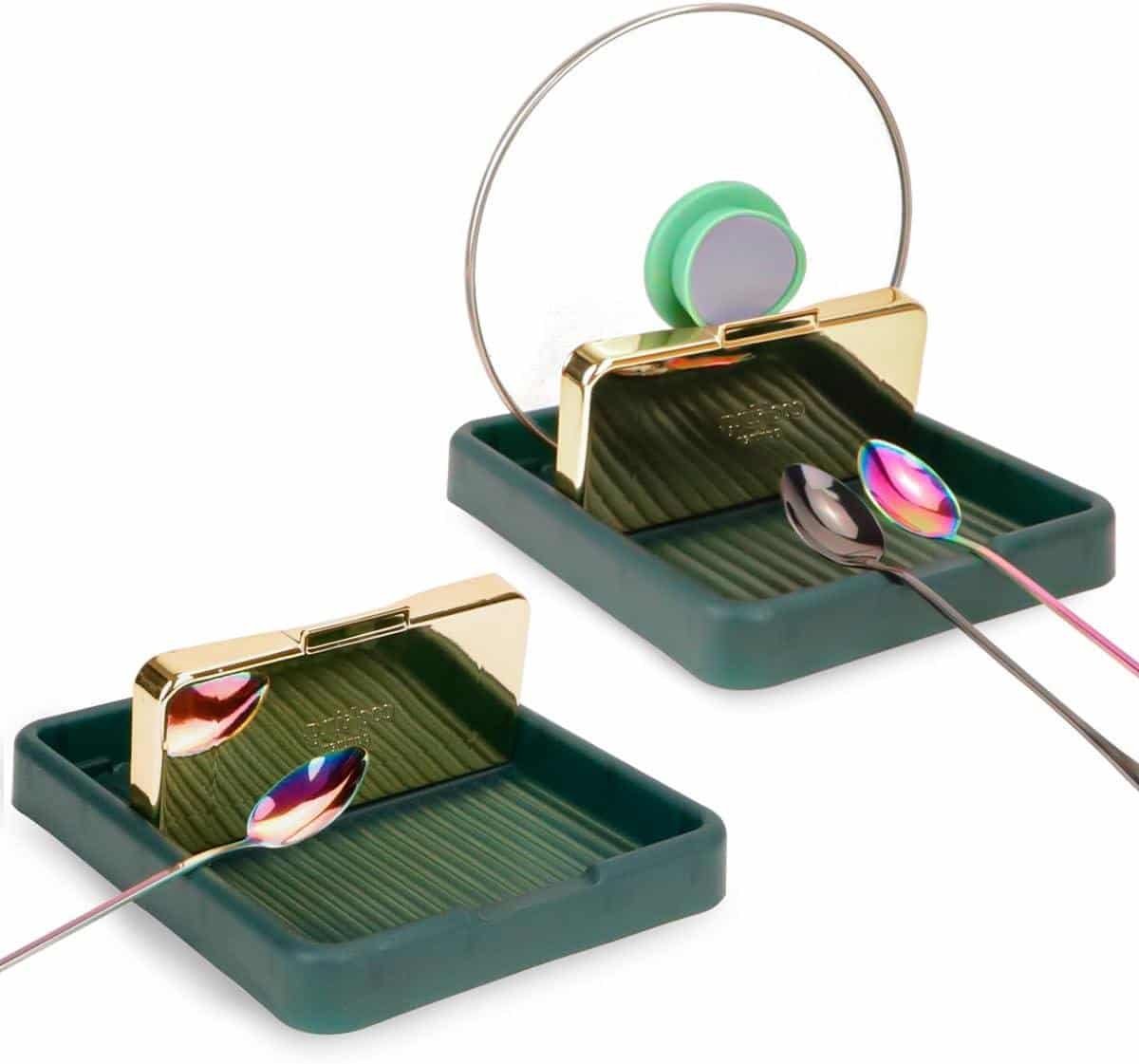Effectief design: De lepelhouders hebben een verbrede en diepe rand die vlekken op het werkblad voorkomt. Dankzij het opvouwbare steungebied zijn ze gemakkelijk op te bergen en nemen ze weinig ruimte in beslag.