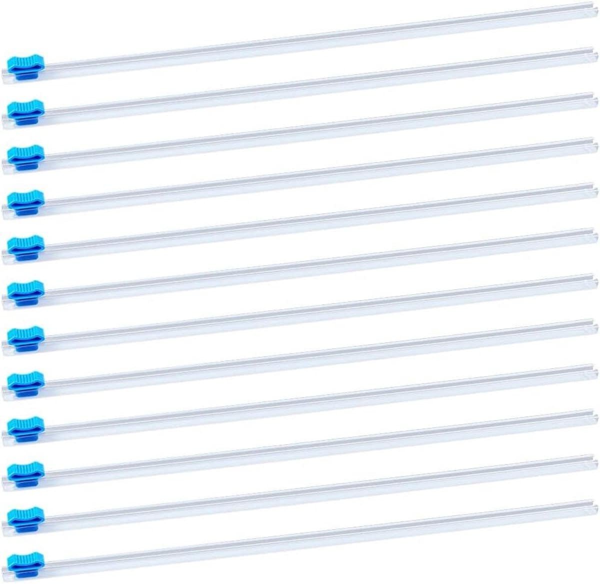 12 stuks 12 Inch Plastic Wrap Cutter: Met dit pakket ontvang je 12 blauwe klampen slide cutters als vervanging voor plastic folie. Let op: plasticfolie is niet inbegrepen. De afmeting is 30,5 cm. Zorg ervoor dat de maat geschikt is voor jouw behoeften voordat je bestelt.