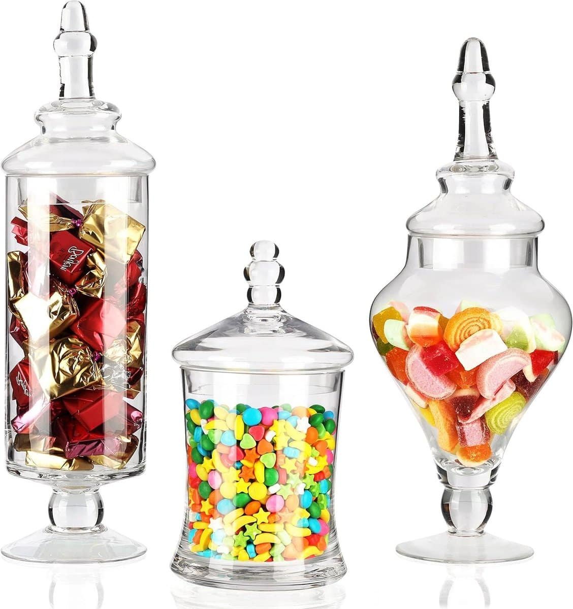 Allecto – Glazen Snoep Opslagpot – Set van 3 – Decoratief – Transparant – Victoriaanse Stijl – met Deksel – Voor Huwelijk en Thuisgebruik – Voor Voedselopslag – Feestelijke Keuken Accessoires