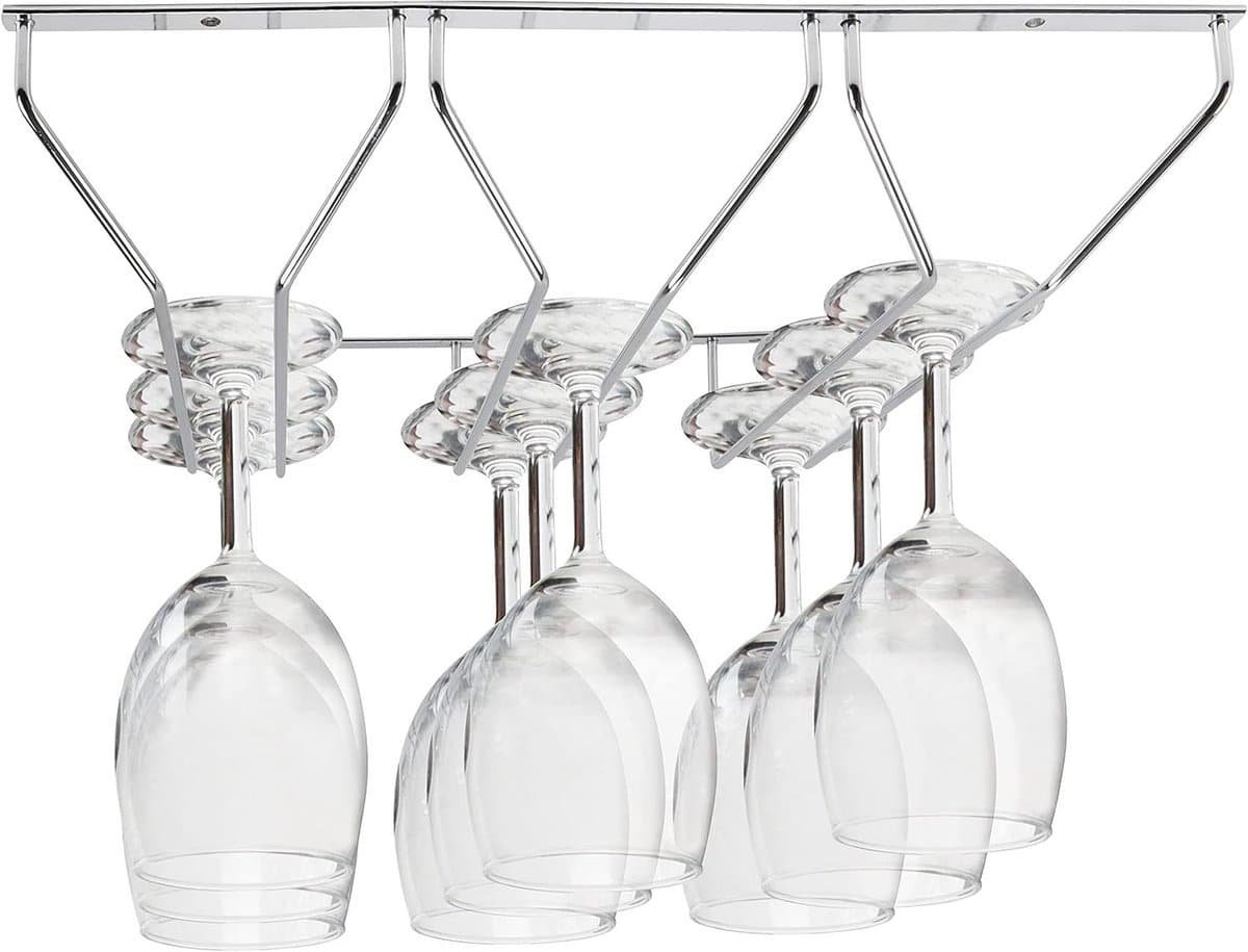 Berg uw glazen op onder een plank, kastje of bar om ruimte te besparen en het delicate glaswerk te beschermen tegen beschadiging. Houd tot 12 glazen veilig en stofvrij in dit handige rek.