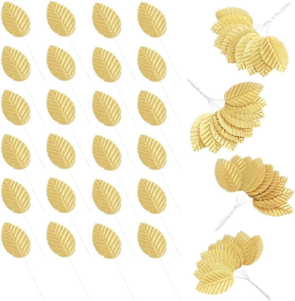 Allecto- Kunstmatige enkele bladeren – DIY – Faux bloem – 200 stuks – Decoraties – Ambachten – Geschikt voor thuis – Gouden zijden bladeren met stengel – Corsage – Bruiloft – Keuken – Boutonniere – Accessoire