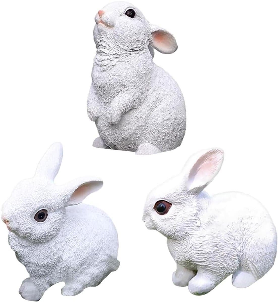 Allecto Plus – 3 Stuks Miniatuur Tuinbeeldjes Konijn – Mini-Dieren Landschapsdecoraties – Tuinbeelden Mini Accessoire – Ornamenten voor Thuis – Keuken – Taarttoppers