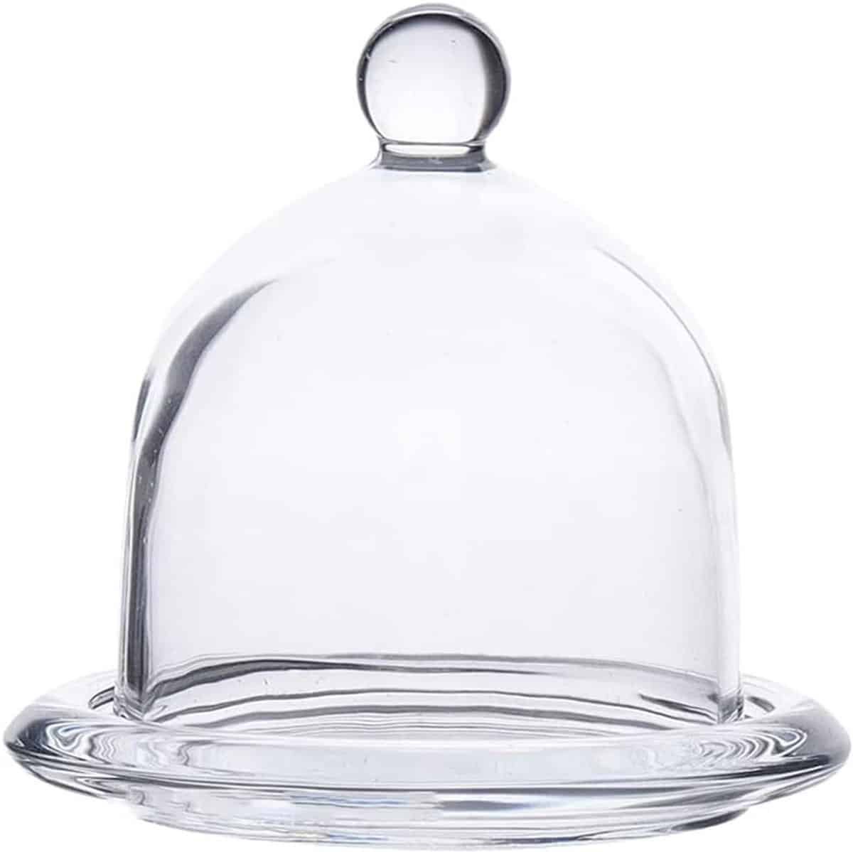 Allecto Plus – Cake Stand met Glas Koepel – Rond Server Dienblad voor Cake, Boter, Kaas – 1 Set – 9.5x9cm – Stijlvol Design – Keuken Accessoires