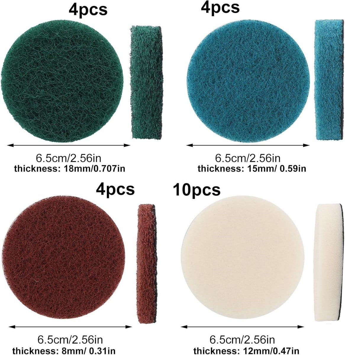 Inhoud van de levering: Deze elektrische reinigingsborstelset bestaat uit in totaal 22 delen met een diameter van 65 mm. 10 witte (dikte 12 mm), 4 groene (dikte 15 mm), 4 blauwe (dikte 10 mm), 4 bruine (dikte 7 mm), 4 verschillende soorten reinigingspads zijn voldoende om aan je dagelijkse gebruiksbehoeften te voldoen. Efficiënter reinigen.