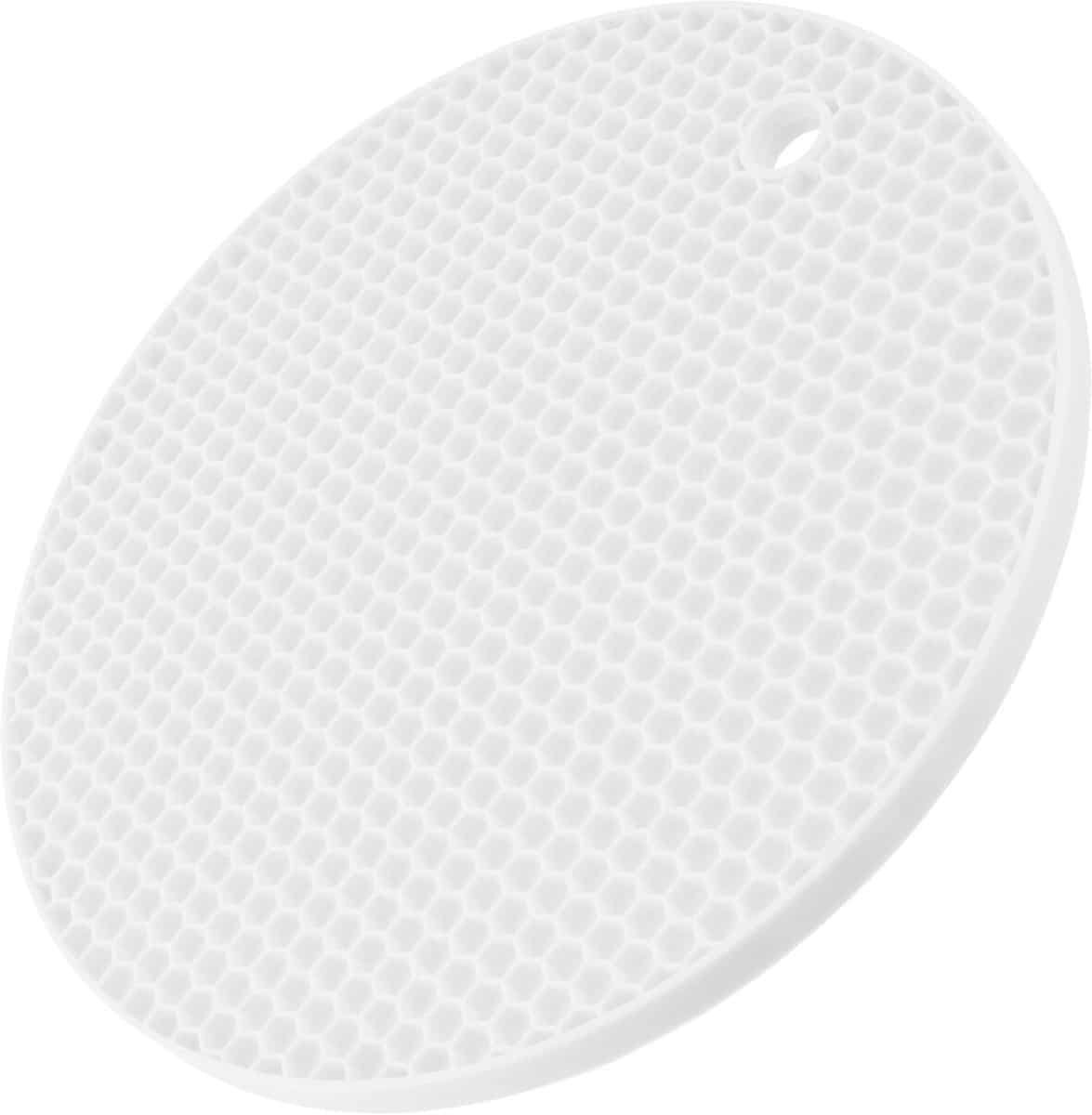Allecto plus – Hittebestendige siliconen onderzetter Ø175 mm honingraat motief met antislip – wit – keuken accessoire – glasbeschermer.