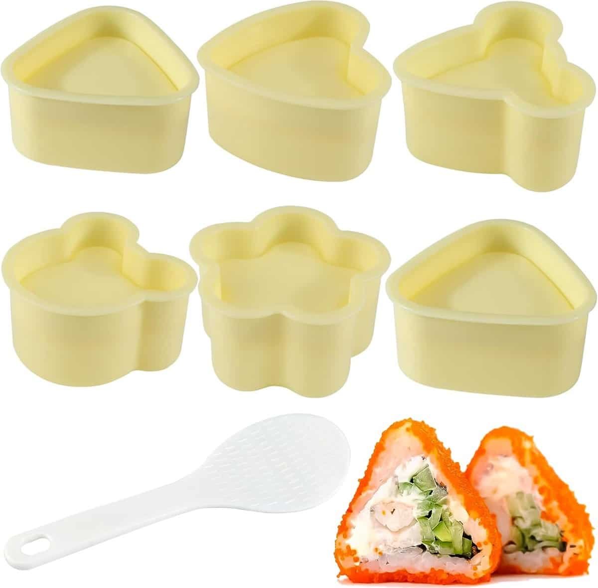 Allecto Plus – Onigiri-vorm 6 stuks – Sushi-vorm voor rijstballen – Doe-het-zelf kit met rijstlepel – Keuken accessoire voor beginners en feestjes