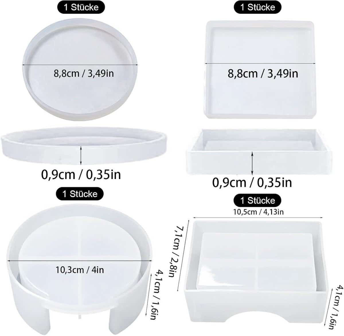 Je ontvangt 10 stuks onderzettervormen, set: 4 ronde onderzetters, 1 ronde onderzetterdoos, 4 vierkante onderzetters, 1 vierkante onderzetterdoos