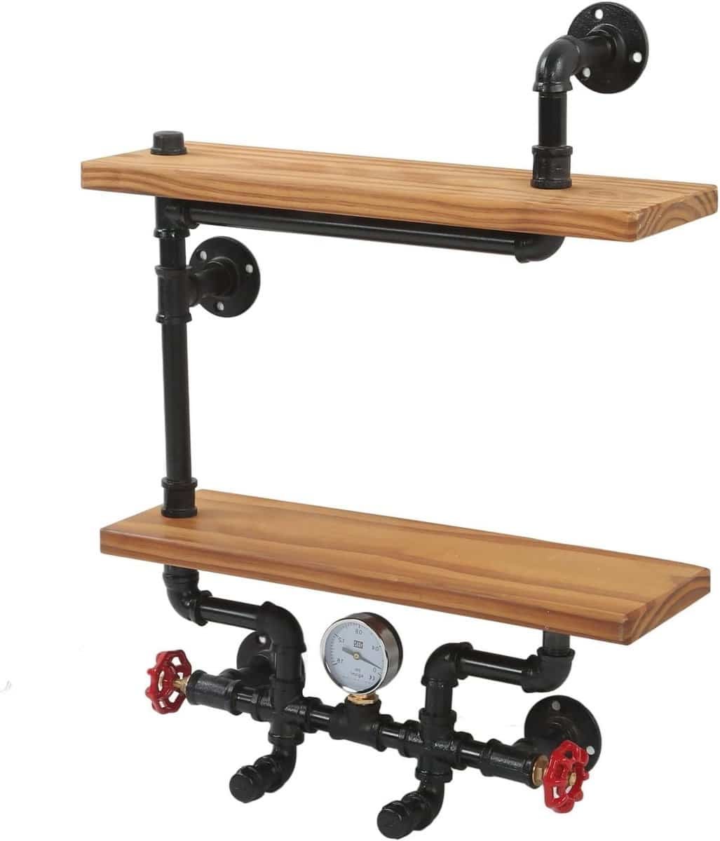 Allecto plus – Wandgemonteerd Stalen Buizenrek Houten Plank Boekenplank – Industrieel Design – Keuken Woonkamer Slaapkamer Opslag – 2 Lagen – Bakgereedschap Accessoires