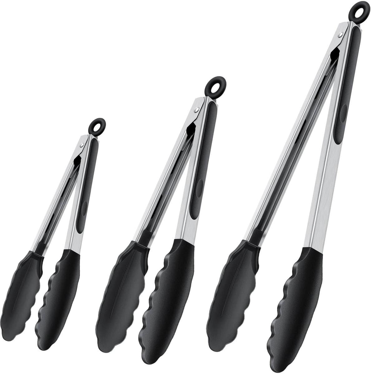 Allecto - - Silicone Keuken Tangen - Grill Tangen - Hittebestendig en Veilig - 35 cm / 23 cm / 18 cm - Keuken Accessoire - Voor Koken - Zwart