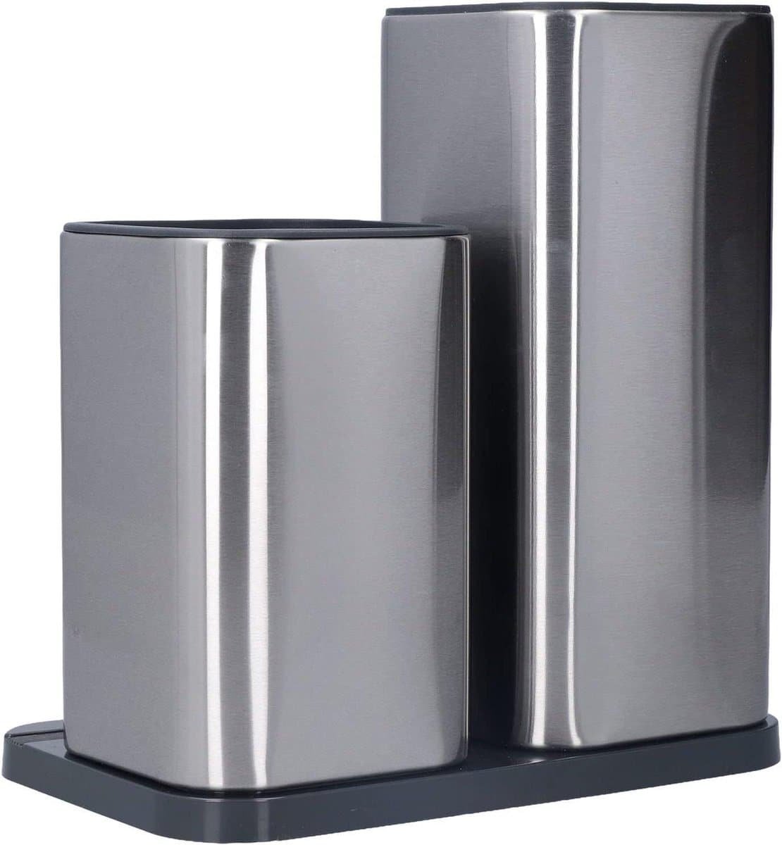 De buitenwand van de messenblokhouder is vervaardigd van dik roestvrij staal, waardoor deze bestand is tegen intensief gebruik. Het unieke zwarte interieur voegt een stijlvol tintje toe aan je keuken.