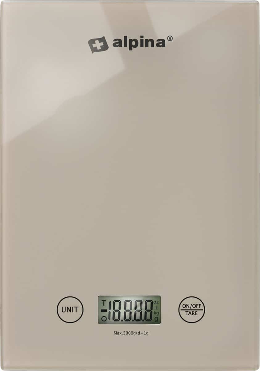 alpina Keukenweegschaal Digitaal – Weegschaal Keuken in gr, lb, oz en ml – Precisie Weegschaal met Tarra Functie – Keuken Accessoires – 22 x 15,5 cm – Beige
