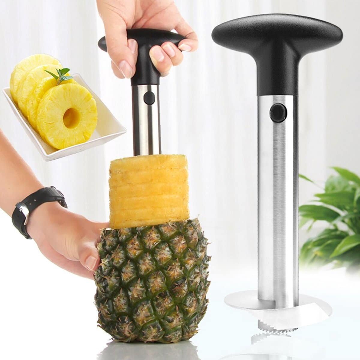 De ananassnijder is een handig hulpmiddel om snel en eenvoudig ananas te snijden. De snijder is gemaakt van roestvrij staal en heeft een scherp mes dat door de ananas snijdt.