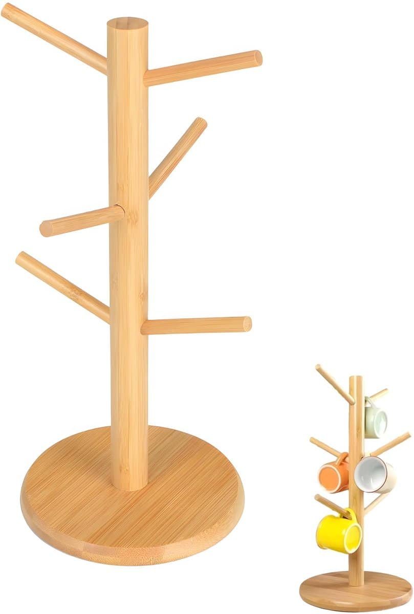 [Veelzijdige toepassingsmogelijkheden]: De bamboe bekerhouder kan tot 6 kopjes of mokken tegelijk bevatten. Hij kan worden gebruikt om koffiekopjes, theekopjes en mokken te drogen of op te bergen, en kan ook worden gebruikt om armbanden, kettingen, haaraccessoires en andere items te ordenen.
