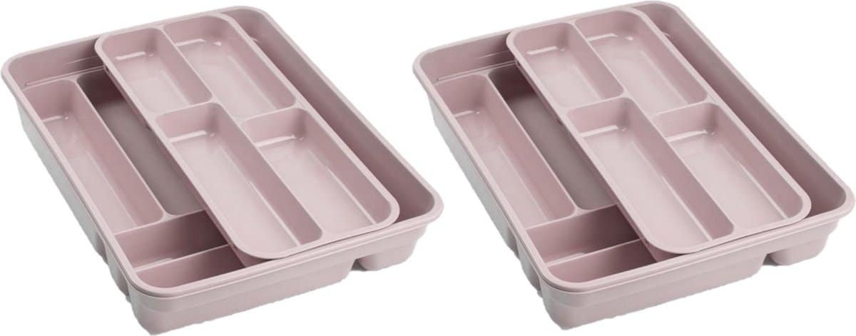 Bestekbak/bestekhouder roze 40 x 30 x 7 cm – 2 lagen – Keuken opberg accessoires