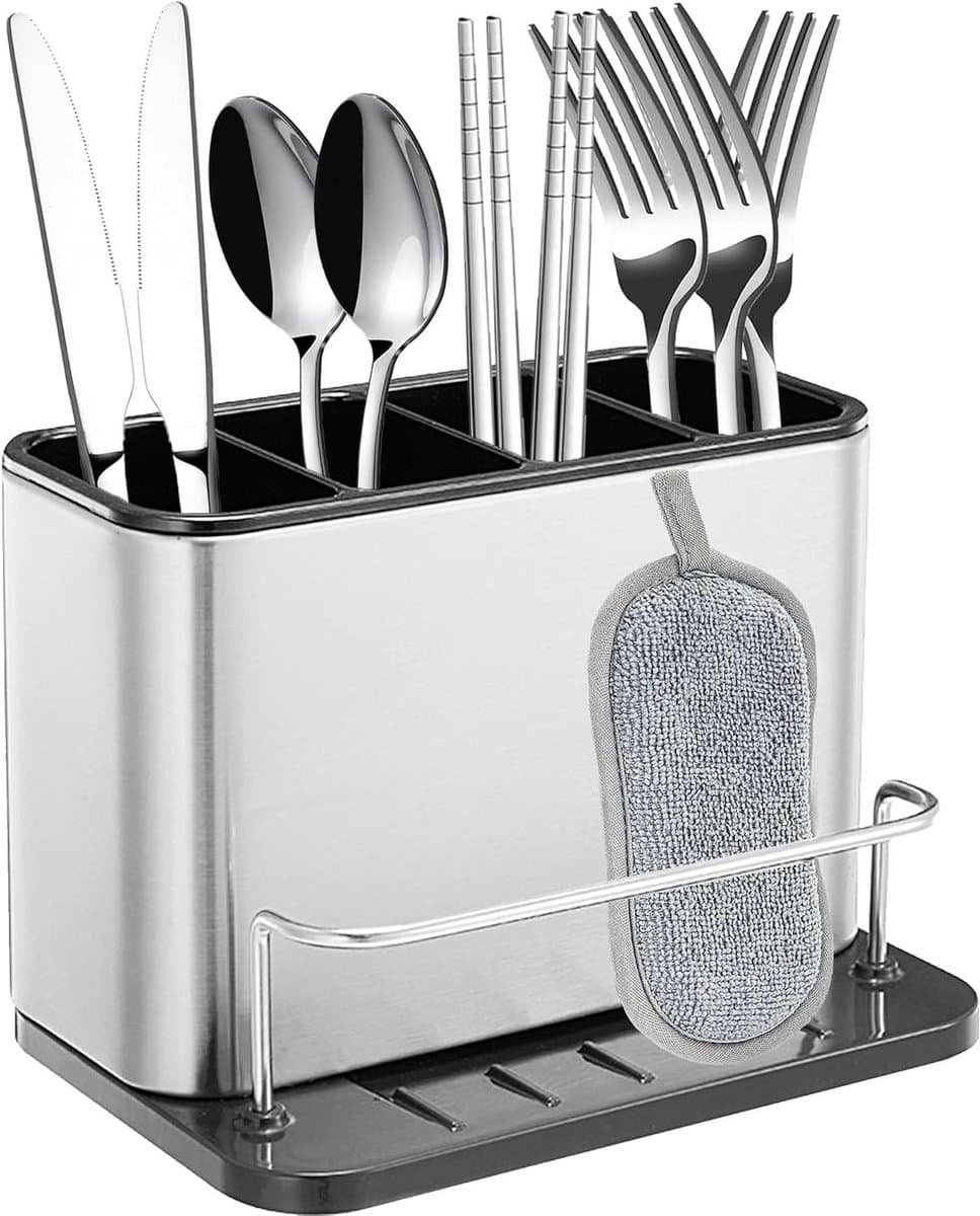 Bestekhouder en Organizer voor Aanrecht – Compacte Drainer voor Vorken, Messen en Lepels – Roestvrij Staal – Keuken Accessoire
