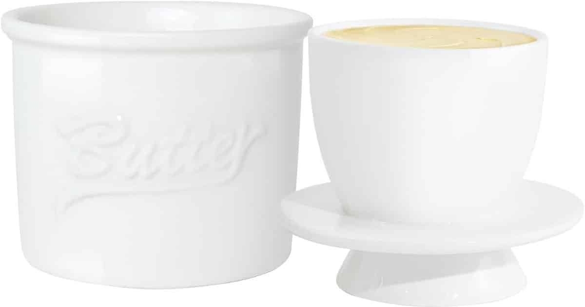 Botervloot – Wit – botervloot met deksel -botervloot keramiek – Watergekoelde Botervloot Met Waterlijn – Keramische Boterbel Voor Smeerbare Boter – Cadeau Voor De Keuken – Keuken Accessoires – Keuken Tools – Franse Botervloot