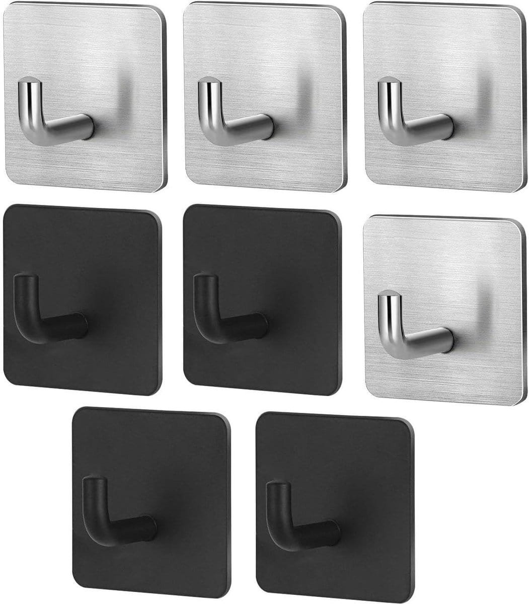 ByShane – Zelfklevende haken set van 8 stuks voor keuken, slaapkamer en woonkamer – Roestvrijstalen haken – Huishoudelijke accessoires – Duurzaam en handig