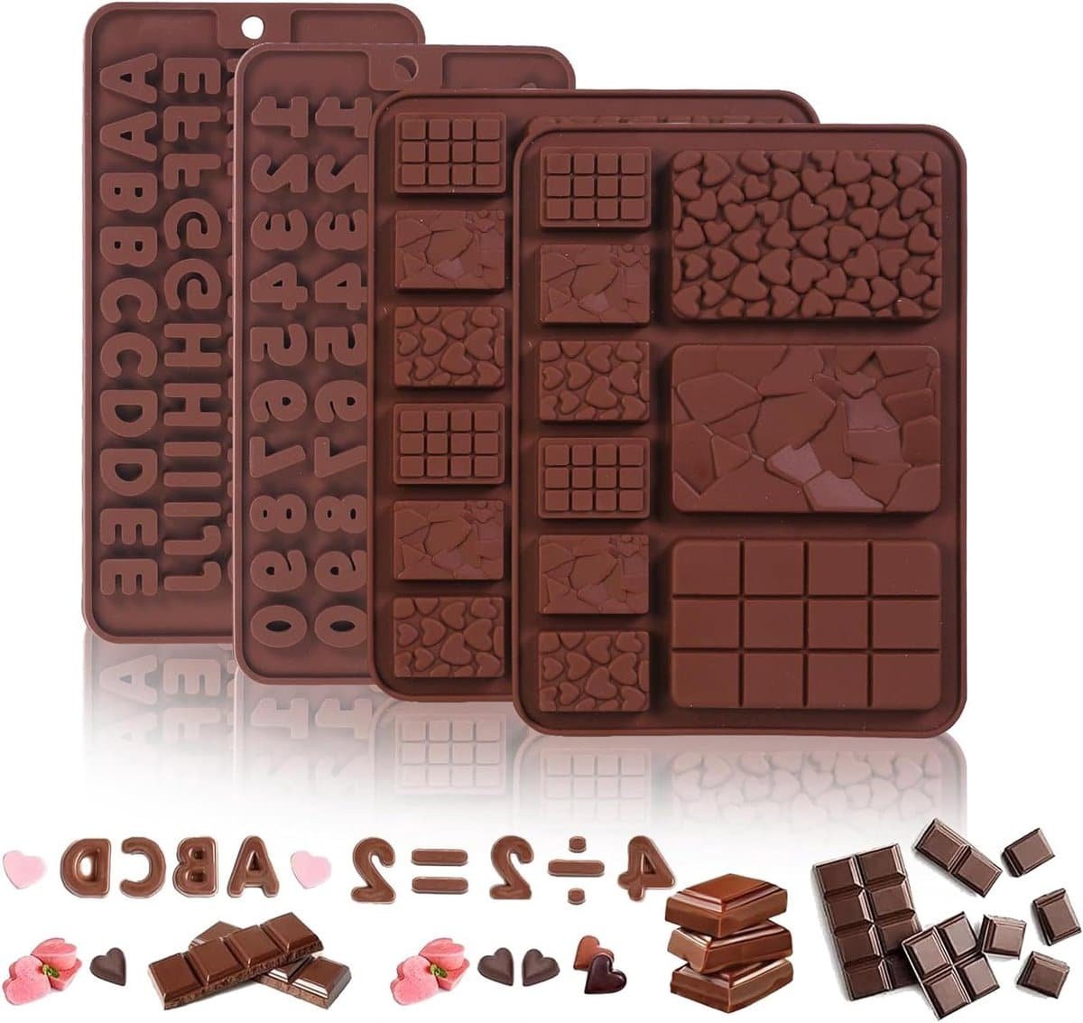 Productspeficaties: Bevat 4 chocoladevormen, 1 siliconen vorm met letters, 1 siliconen mal met cijfers en 2 siliconen vormen voor chocolade-koekjes