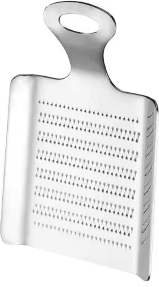 CHPN RVS Rasp Geniet van de vele voordelen van de CHPN RVS Rasp! Deze handige keukenhulp is perfect voor het raspen van knoflook, gember, nootmuskaat en nog veel meer. De rasp is vaatwasmachine bestendig en heeft een ophangoog. De ergonomische vormgeving zorgt ervoor dat de rasp gemakkelijk in de hand ligt. Het artikel wordt verzonden als brievenbuspakket, dus u hoeft niet thuis te blijven om het te ontvangen. Geniet van deze gemakkelijke manier om harde voedingsmiddelen tot zachte pulp te raspen.