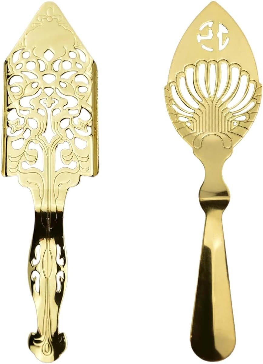 Cosensi – Roestvrijstalen Absintlepel Set – Multifunctionele Koffielepel – Cocktailbar Accessoires – Drinkfilter voor Keuken – Goudkleurig – 5 stuks