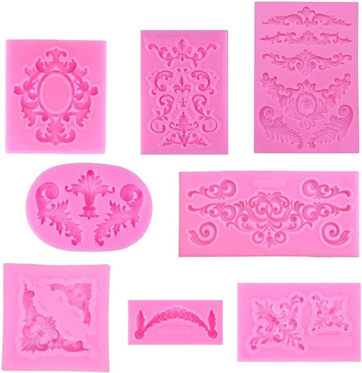 Pakket bevat 8 siliconen vormen in verschillende barokke patronen