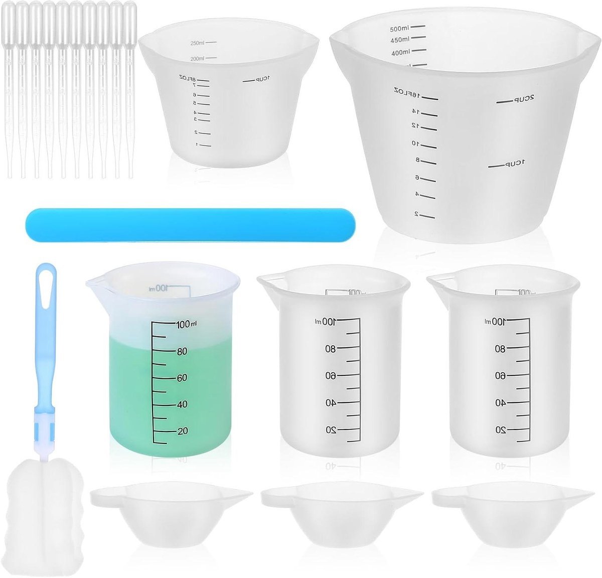 CSGoods – Siliconen maatbeker set voor epoxyhars, DIY knutselen, lab, keuken – 7 stuks – 100 ml 250 ml 500 ml – herbruikbaar – inclusief doseerbekers en accessoires