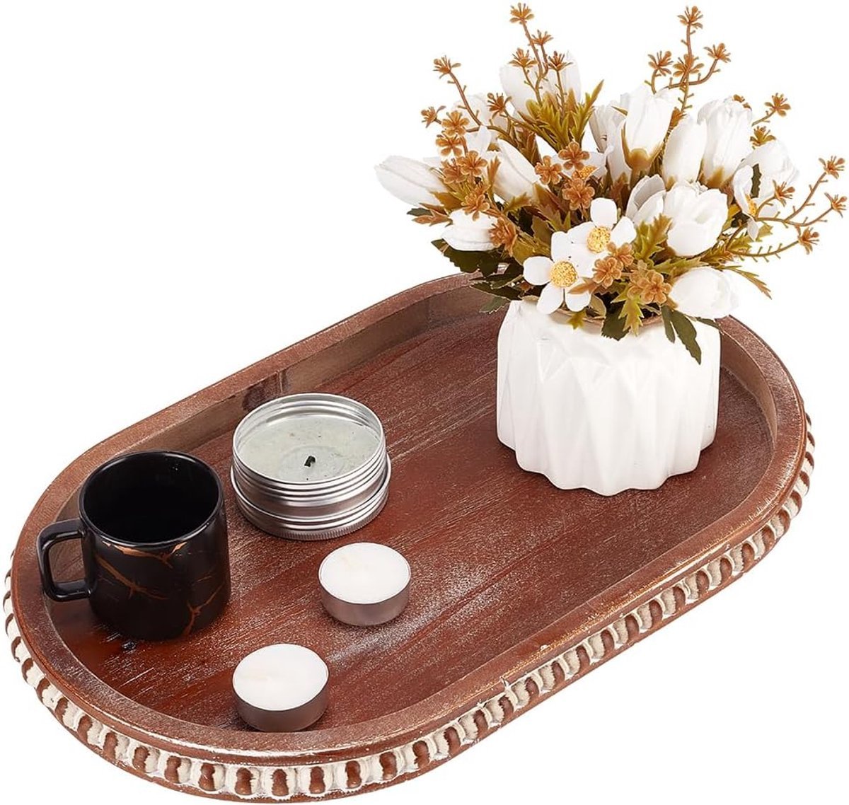 Decorative Tray – Wooden Storage Trays – Bead Oval Tray – Saddle Brown – Pepper Mill Holder – Cosmetics Jewelry Organizer – Voor Keuken – Coffee Table Accessoires
