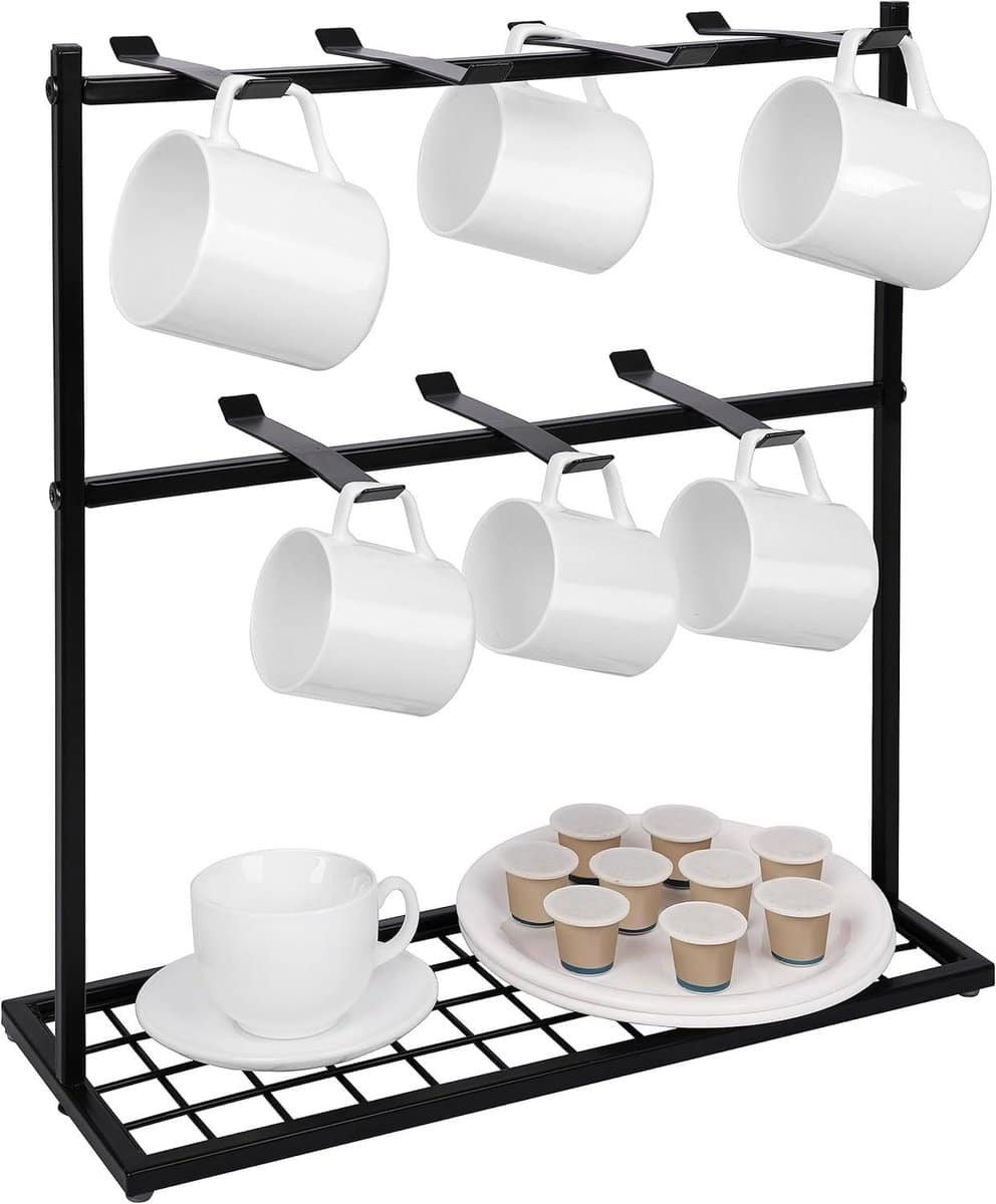 Egoods – Metalen Mok Rek Houder met Opslag – 2 Laags Organizer Boom voor Koffie/Thee Mokken – Keuken/Bar Accessoire